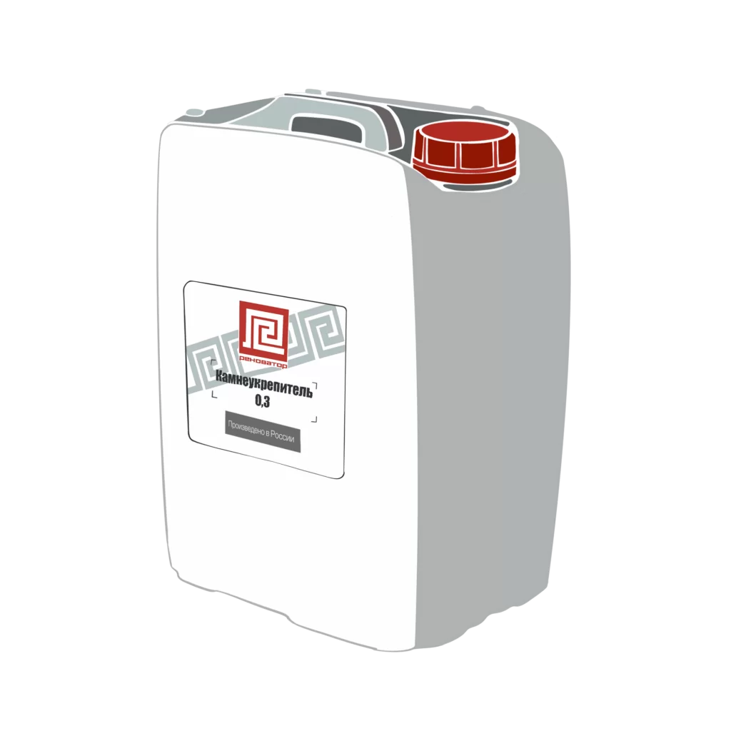 Материал «Реноватор Камнеукрепитель 0,3» — укрепляющий состав на основе эфиров кремниевой кислоты для пропитки природных и искусственных строительных материалов с целью улучшения их физико-механических характеристик. Низкая доля осаждения геля около 30 % Наиболее подходит для обработки среднепористых материалов,