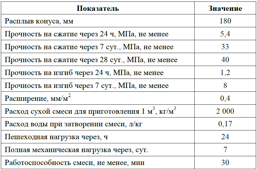 - высокая динамика набора прочности: пешеходная нагрузка допустима через 24 часов, полная нагрузка через 7 суток;