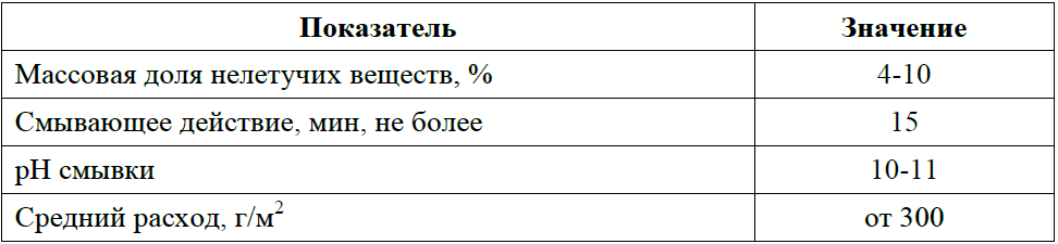 - удобство в применении: представляет собой вязкую однородную бесцветную массу, не стекает с обрабатываемой поверхности, что позволяет производить очистку оснований различных конфигураций на месте, не демонтируя их, за очень короткий срок;