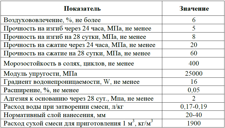 - обладает гарантированными показателями по прочности на сжатие, адгезии, прочности на изгиб;